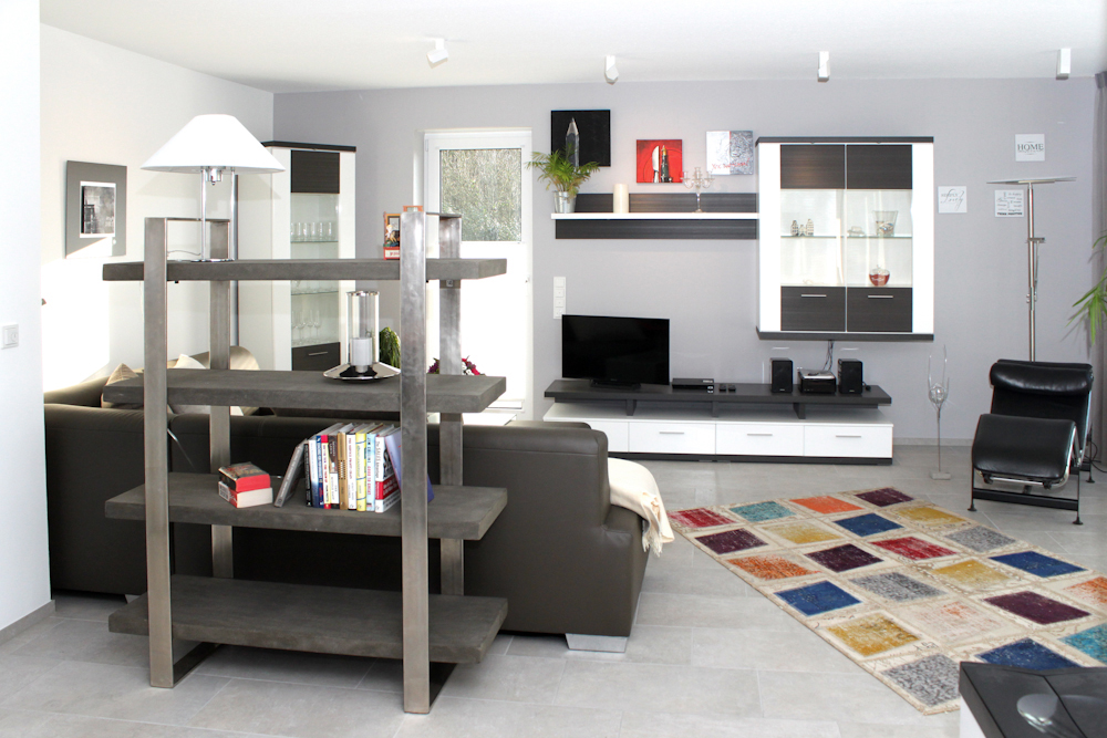 Einfach auf die roten Buttons klicken und schon öffnet sich das Bild zu der Räumlichkeit.